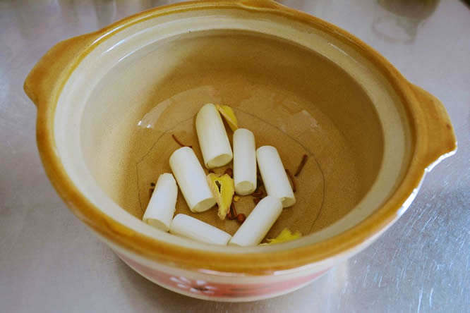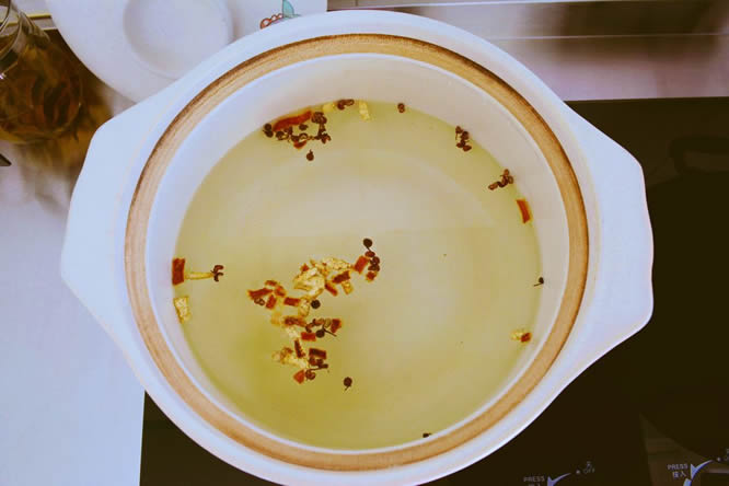 2锅里填上适量的水,放入陈皮(新鲜橘子皮也可以)和花椒,在倒入一点白酒。 放这些能够很好的去掉肉的不好气味~