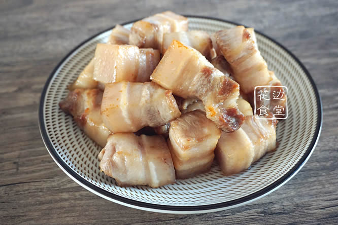 3热锅下少许油,倒入肉块,中小火煎至微微焦黄后盛出