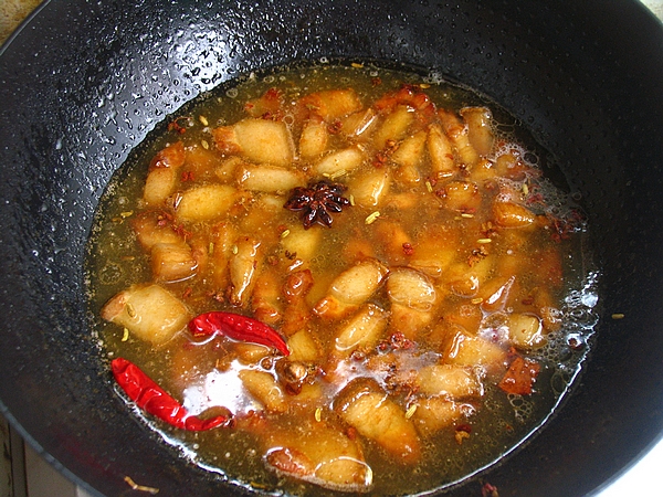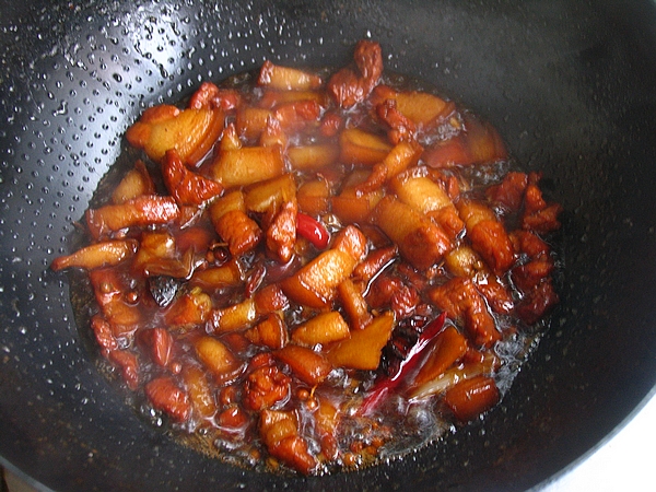 5、往肉里加水的时候最好一次加到位,不能烧干了再补加,那样会影响到肉最终的口感。如果烧到最后肉不是很熟,而水已经干了,那么要加的话一定是加开水,不能加入凉水。