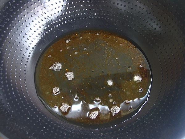 4直接用煸出的油的一部分或者另外起锅倒少量油都可以,放入冰糖融化至褐色
