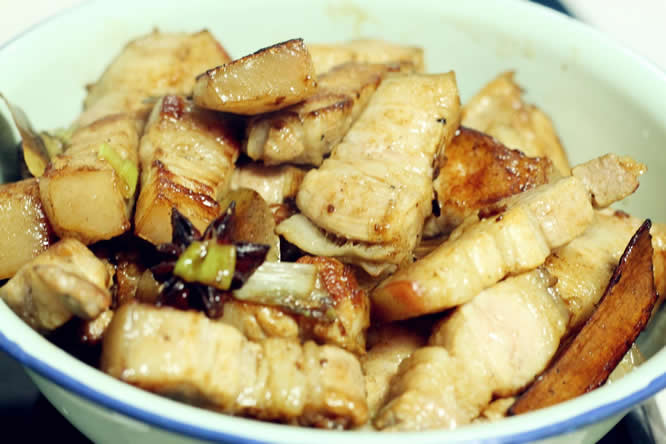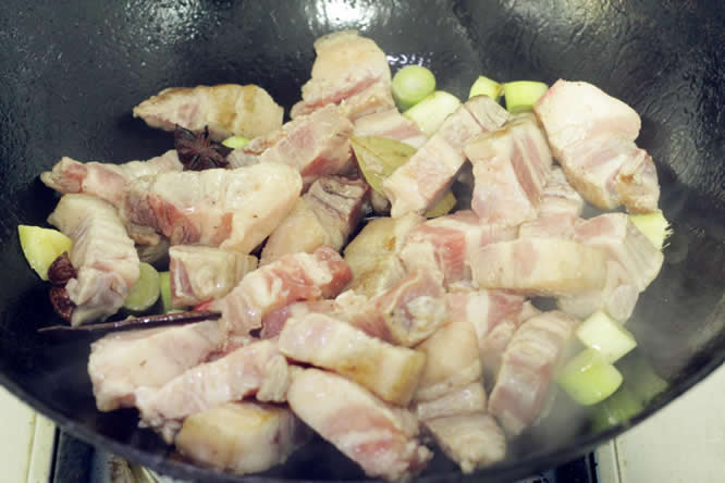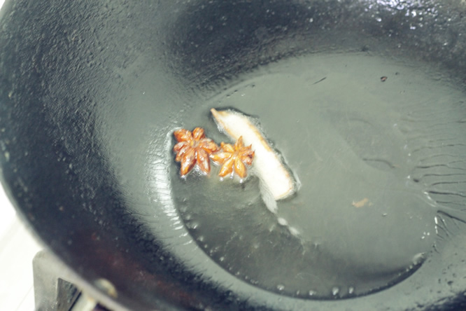 6翻炒到五花肉未焦 就可以盛出来 把香料挑出来噢