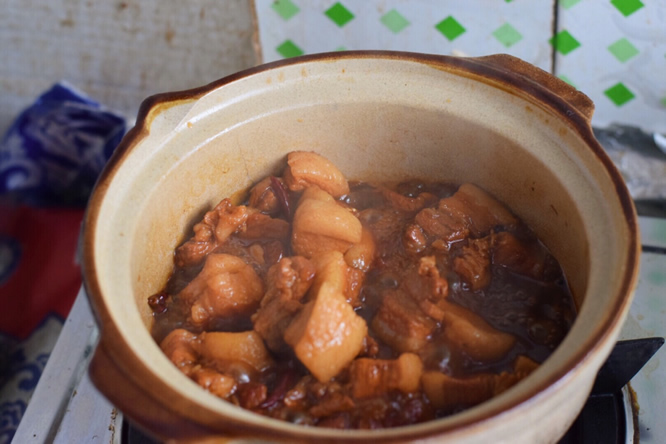 11关火后我会盖上盖子让肉在煲内靠着余热再闷一会儿,肥肉接触到滚烫的锅壁,能够再将油闷出一些,可以听见砂锅内滋滋作响的声音。拍摄的这次我还没来得及照成品图就被爸爸端出去吃了,下次补上。但是按照这个方法烧的红烧肉,夹起肥肉颤颤巍巍晶莹剔透,瘦肉部分软烂入味容易咀嚼,非常好吃。