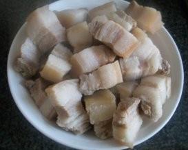 3氽熟的五花肉捞出沥干水