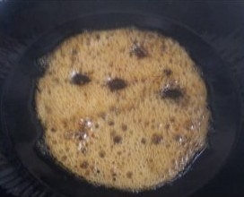 6煮至冰糖成褐色冒泡后关火