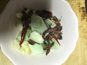 2准备调料 葱姜蒜 花椒大料 辣椒 丁香适量