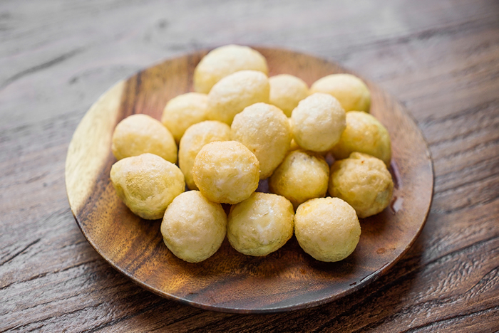 1鹌鹑蛋煮熟去壳,下油锅炸至颜色金黄,捞出备用