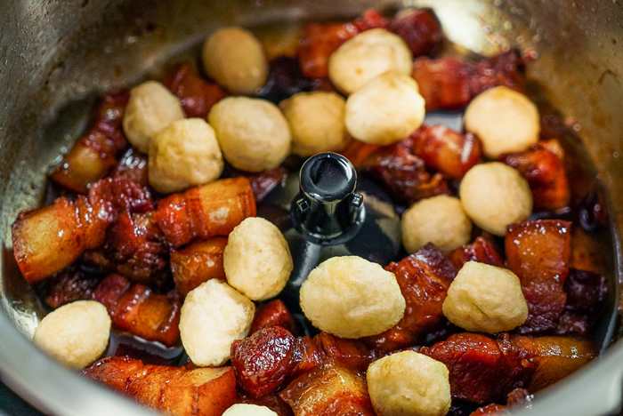5开盖,加入炸好的鹌鹑蛋,再煮5分钟,让蛋充分入味上色,出锅。