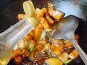 10肉块上色后,加料酒再继续煸炒两下