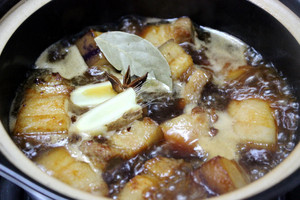 6水烧开后加盖,转小火焖煮1-1个半小时,至猪肉软烂。