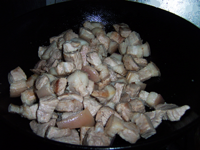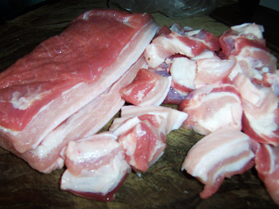 1将五花肉和后尖肉洗净,切块