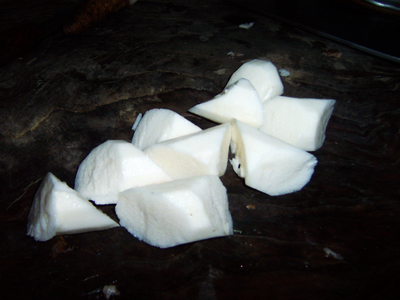 3山药洗净去皮,切成滚刀块