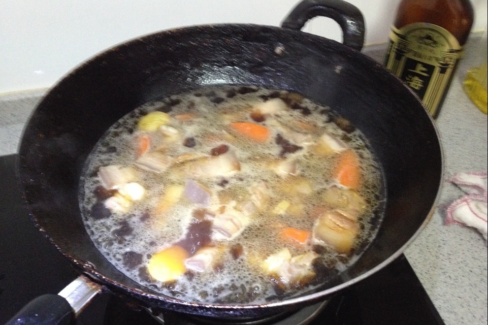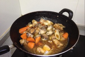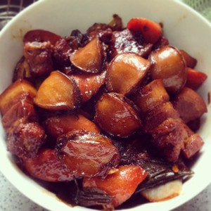 小贴士:加醋使肉不柴;胡萝卜需要煸炒让胡萝卜素融于油脂;冰糖收汁更加有光泽,浓郁;