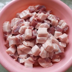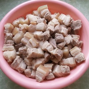 1肉洗净,切方砖。