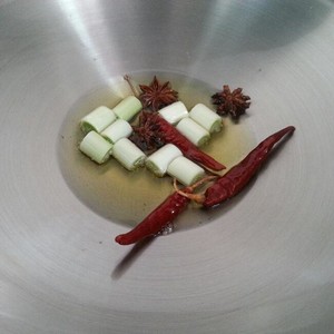 3锅里加油,翻炒佐料。