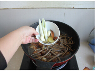 7放入葱姜蒜、桂皮、八角等调料