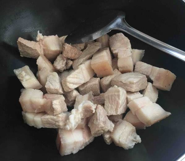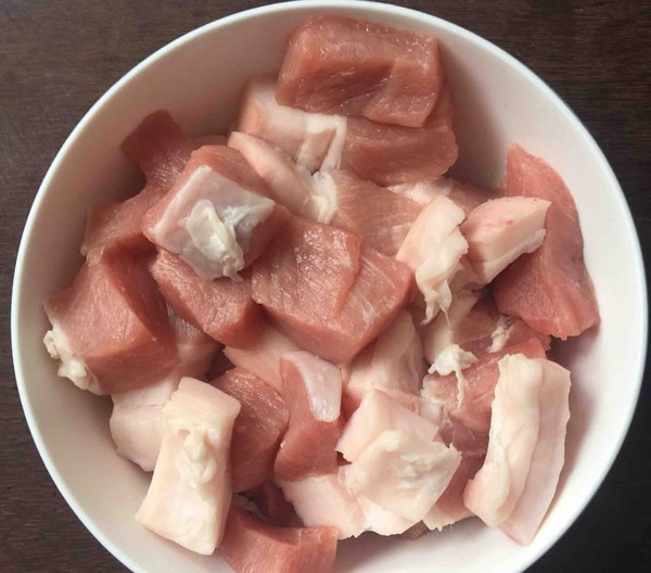 2五花肉根据个人喜好切块,带肥带瘦就好(这次肉买的肥了点,可以买肥的少一点的)