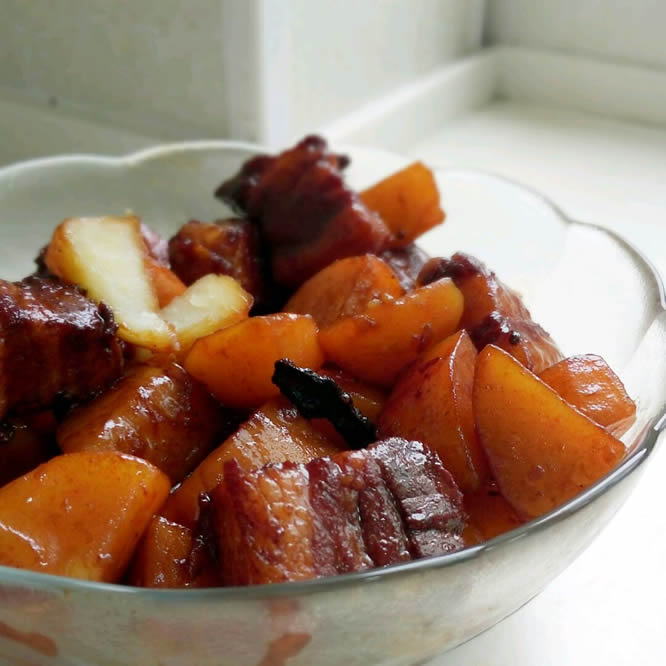 红烧肉这道不变的硬菜,各家有各家的做法,我做的版本是不放红曲米的,不过也很红呢~加了点土豆口感层次更丰富,其实炖肉嘛,想吃什么就炖什么咯,按个人喜好~我则是土豆的狂热份子。