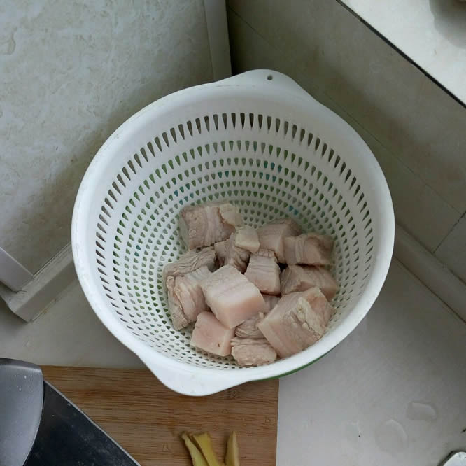 5将洗净的五花肉块焯水,焯到没有血丝渗出即可