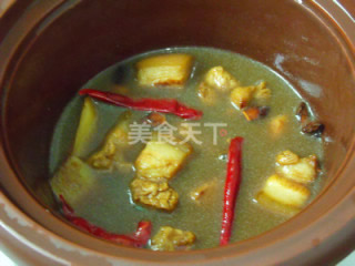 6放入开水,淹没肉,转入砂锅煨两个小时调入盐。