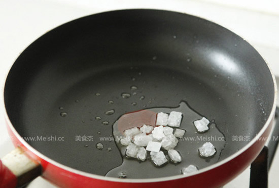 3锅烧热后倒入植物油(约60毫升),调成中火,放入冰糖