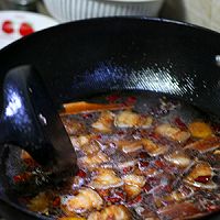 6锅中留底油,下入生姜,桂皮八角,干尖椒,炒香