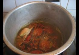 8然后下炸好的螃蟹炒一会儿