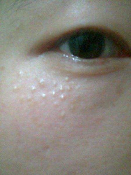 脂肪粒是一种长在皮肤上的白色小疙瘩,约针头般大小,看起来像是一小颗白芝麻,一般发生在脸上和眼周围,特别是女性的眼睛周围。很多MM都误以为自己用的眼霜太油,所以才形成脂肪粒。但事实并不然,脂肪粒的起因应该是皮肤上有微小伤口,而在皮肤自行修补的过程中,生成了一个白色小囊肿。所以临床上,脂肪粒常常发生于什幺都不擦的年轻女性以及小朋友。